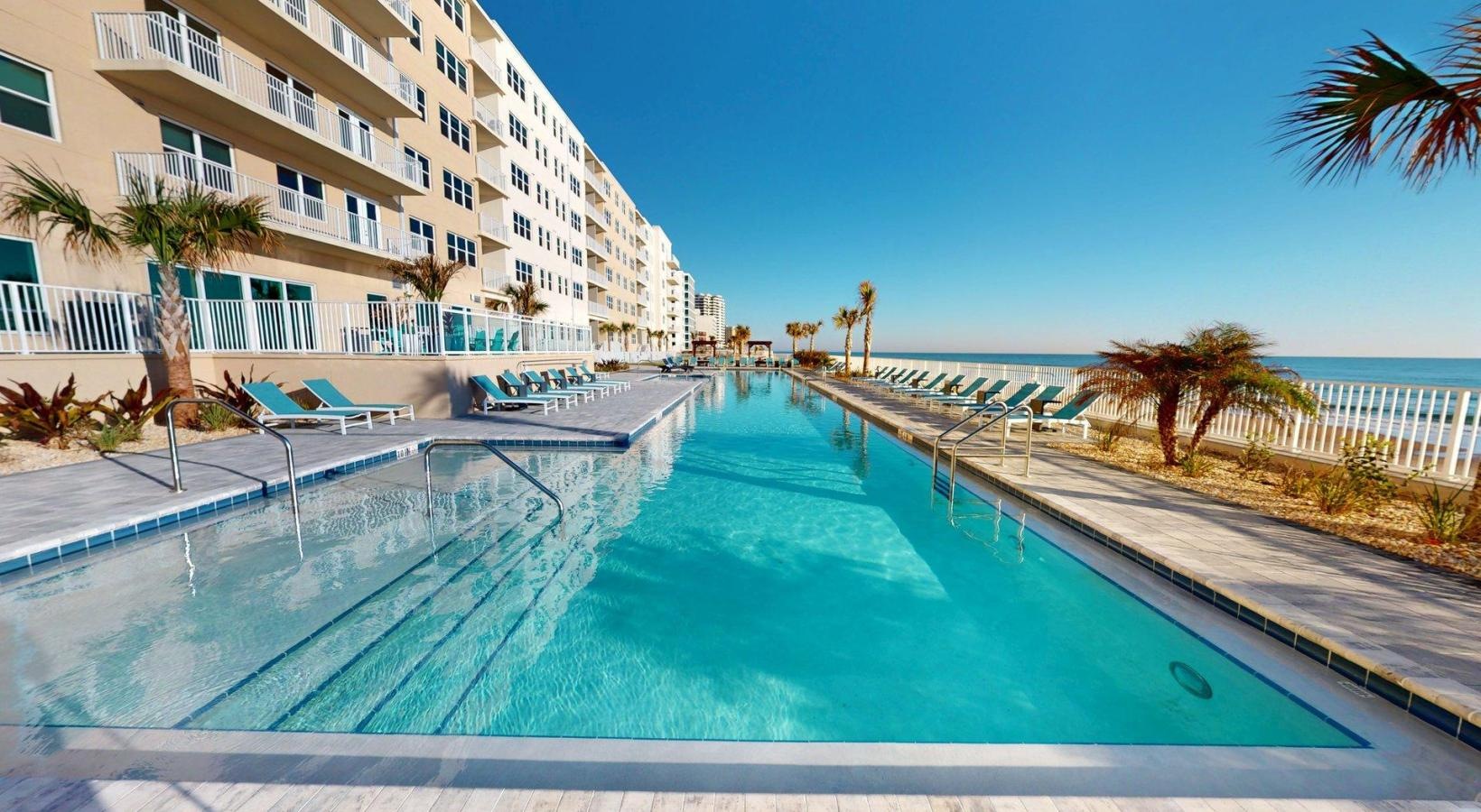 • a pool next to a beach