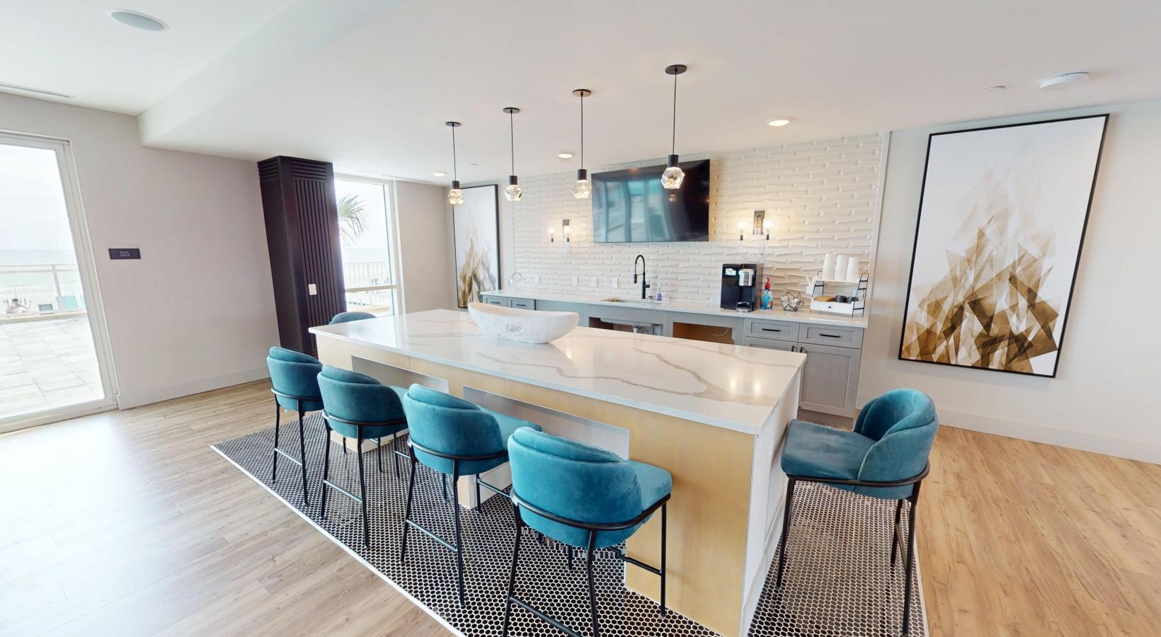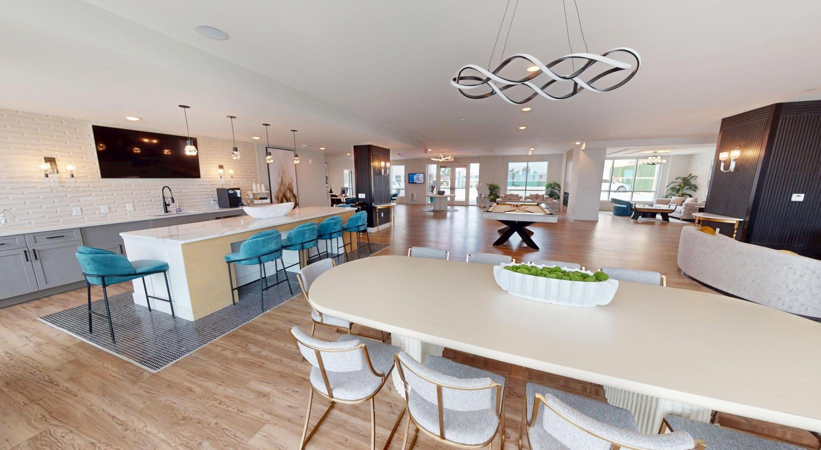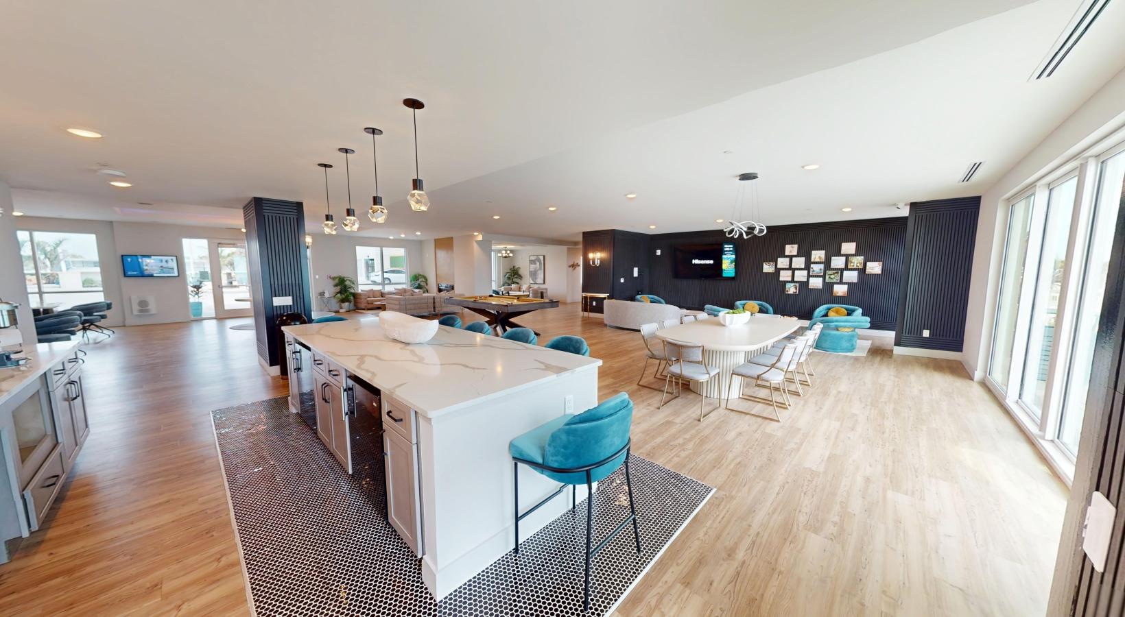 • a clubroom with a community kitchen