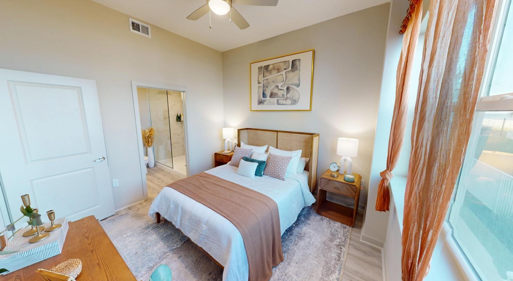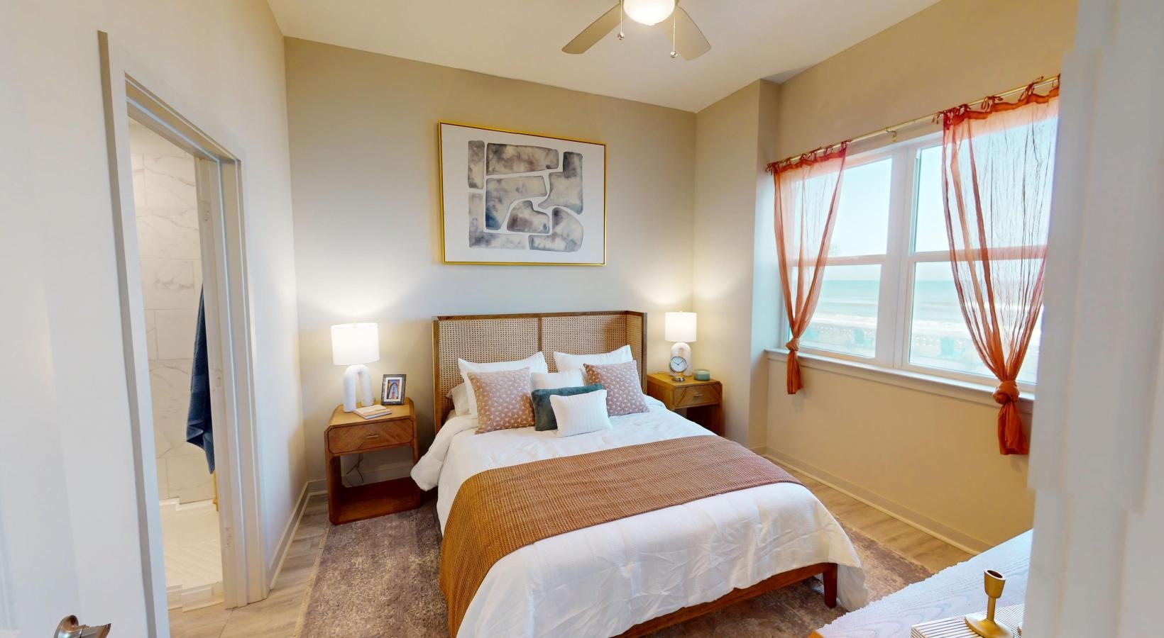 • a bedroom with a bed and two nightstands