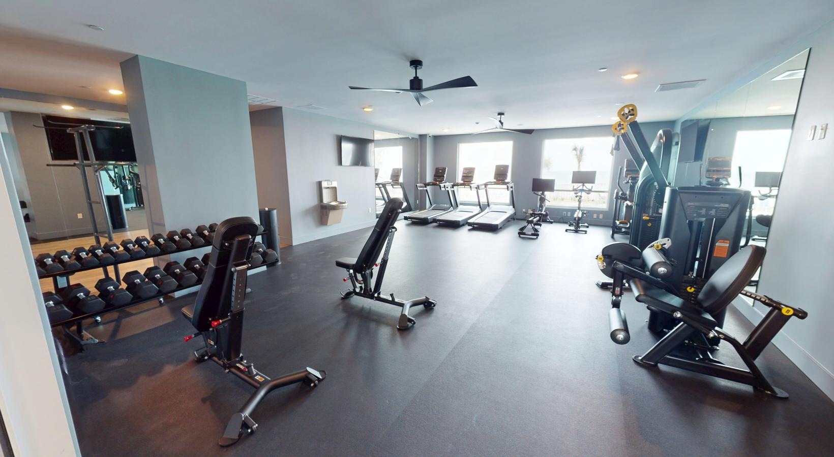 • a gym with exercise equipment
