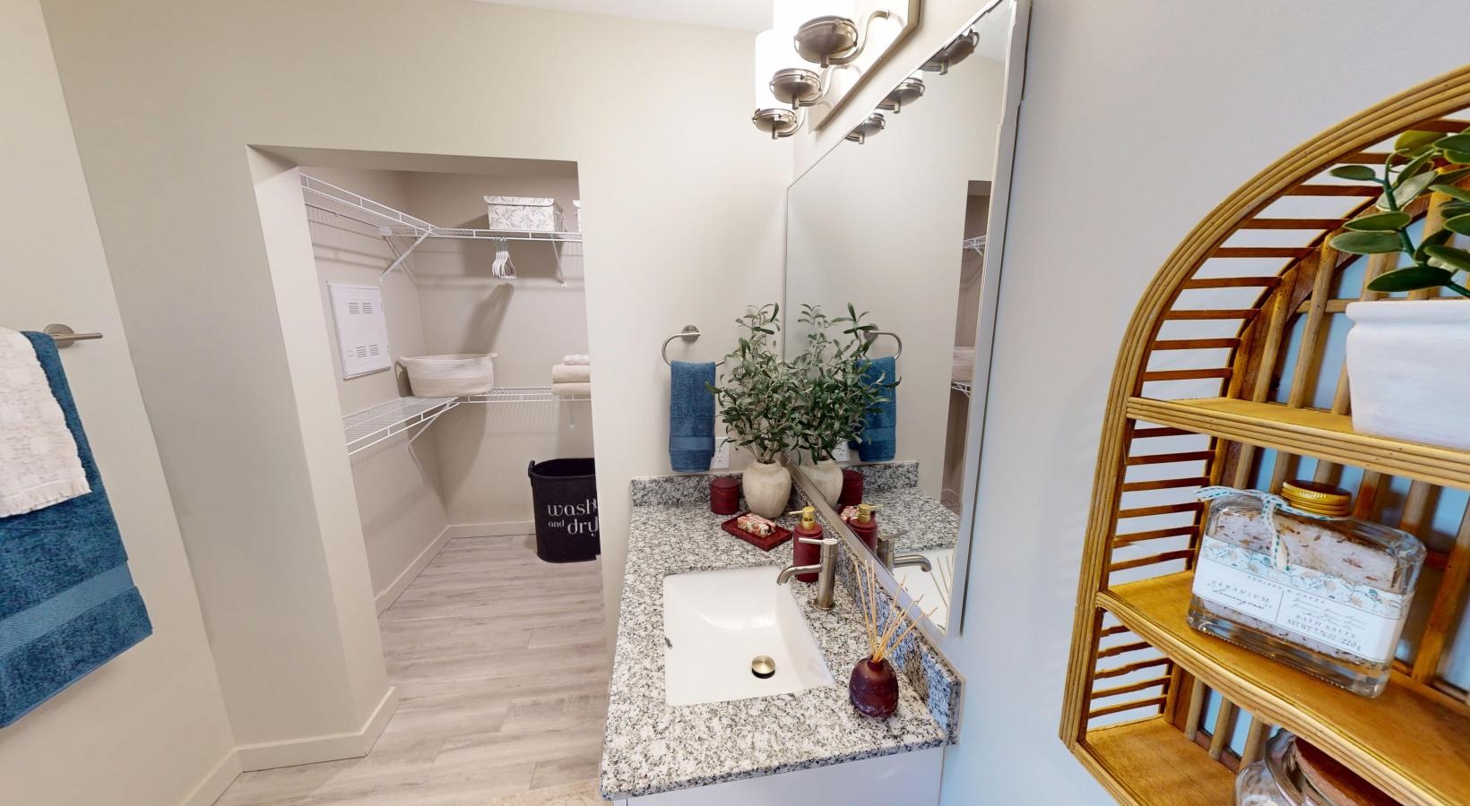 • a bathroom with a sink and a mirror