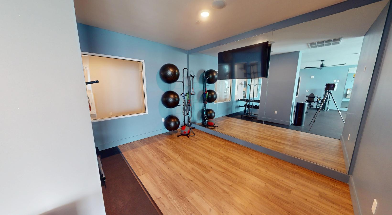 • a yoga studio with a tv
