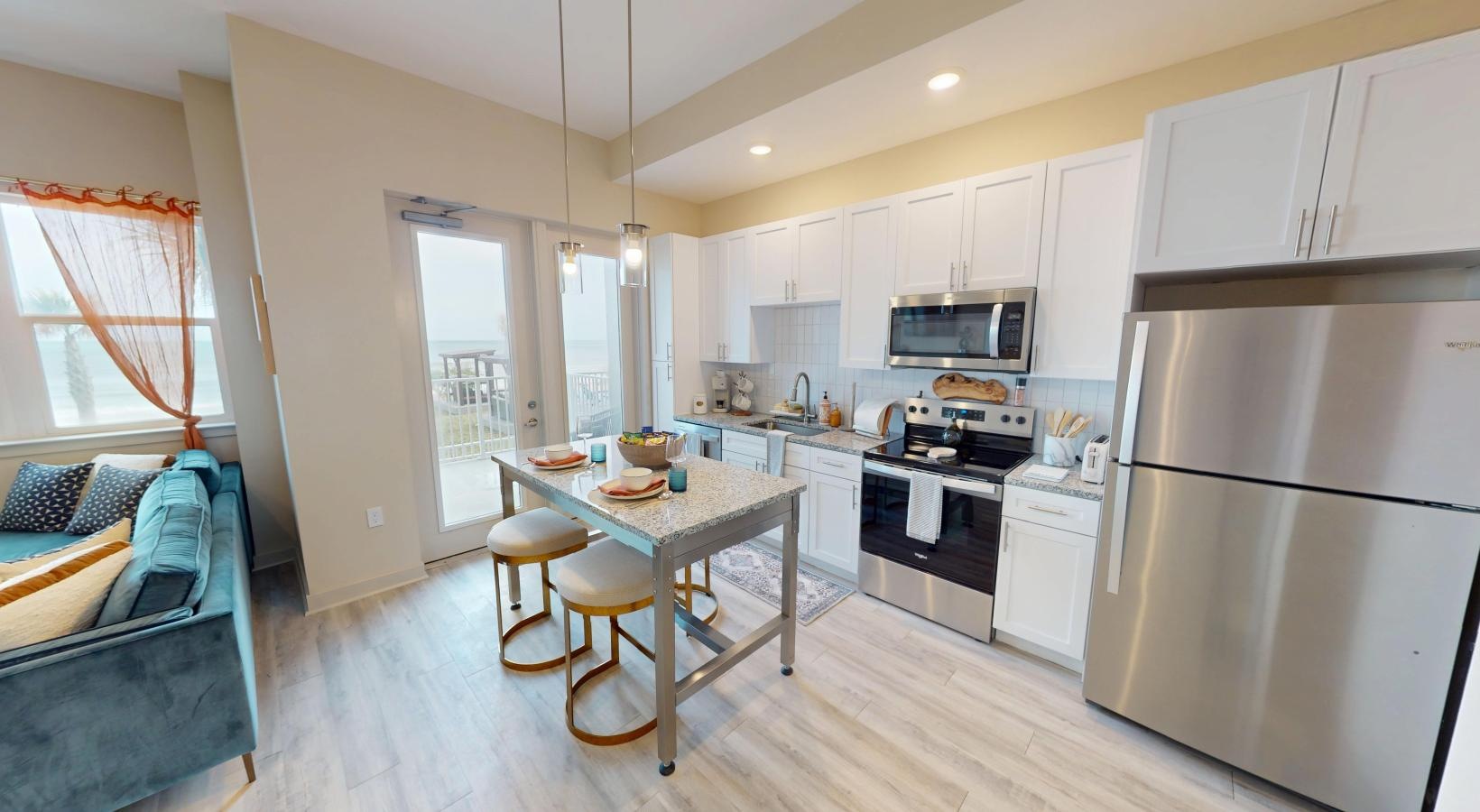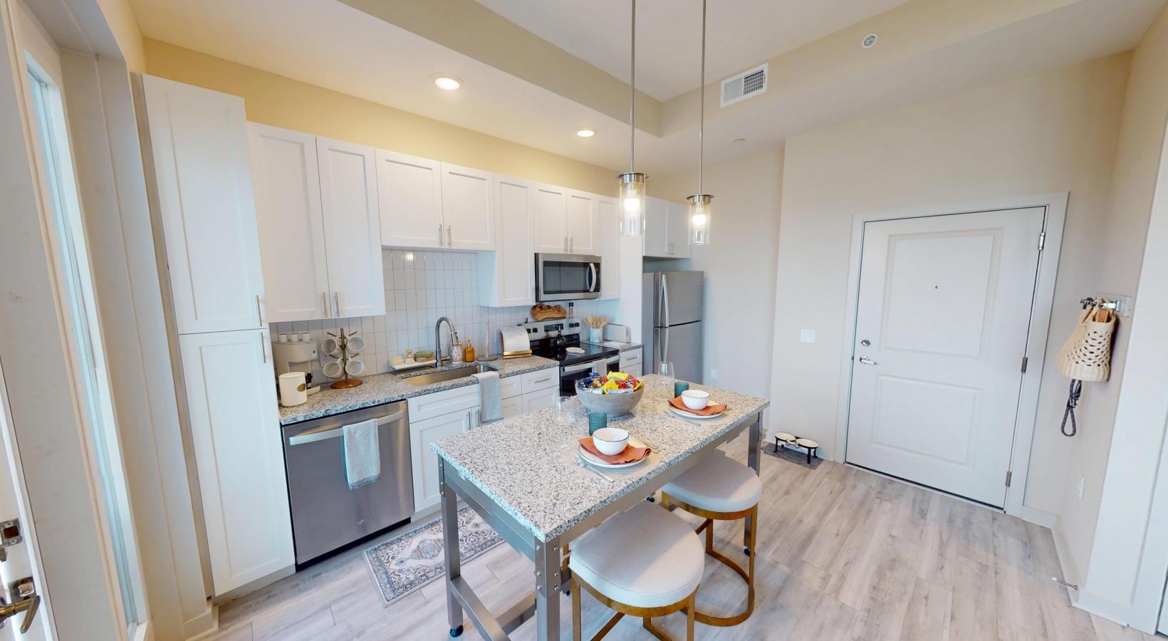 • a kitchen with a table and chairs