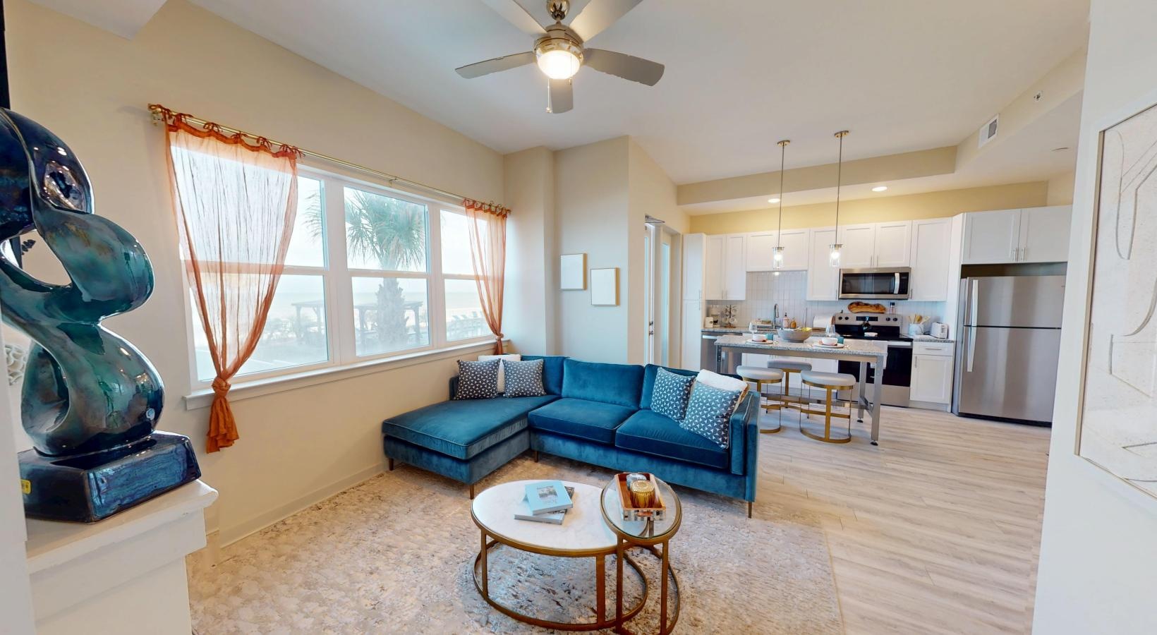 • a living room with a blue couch
